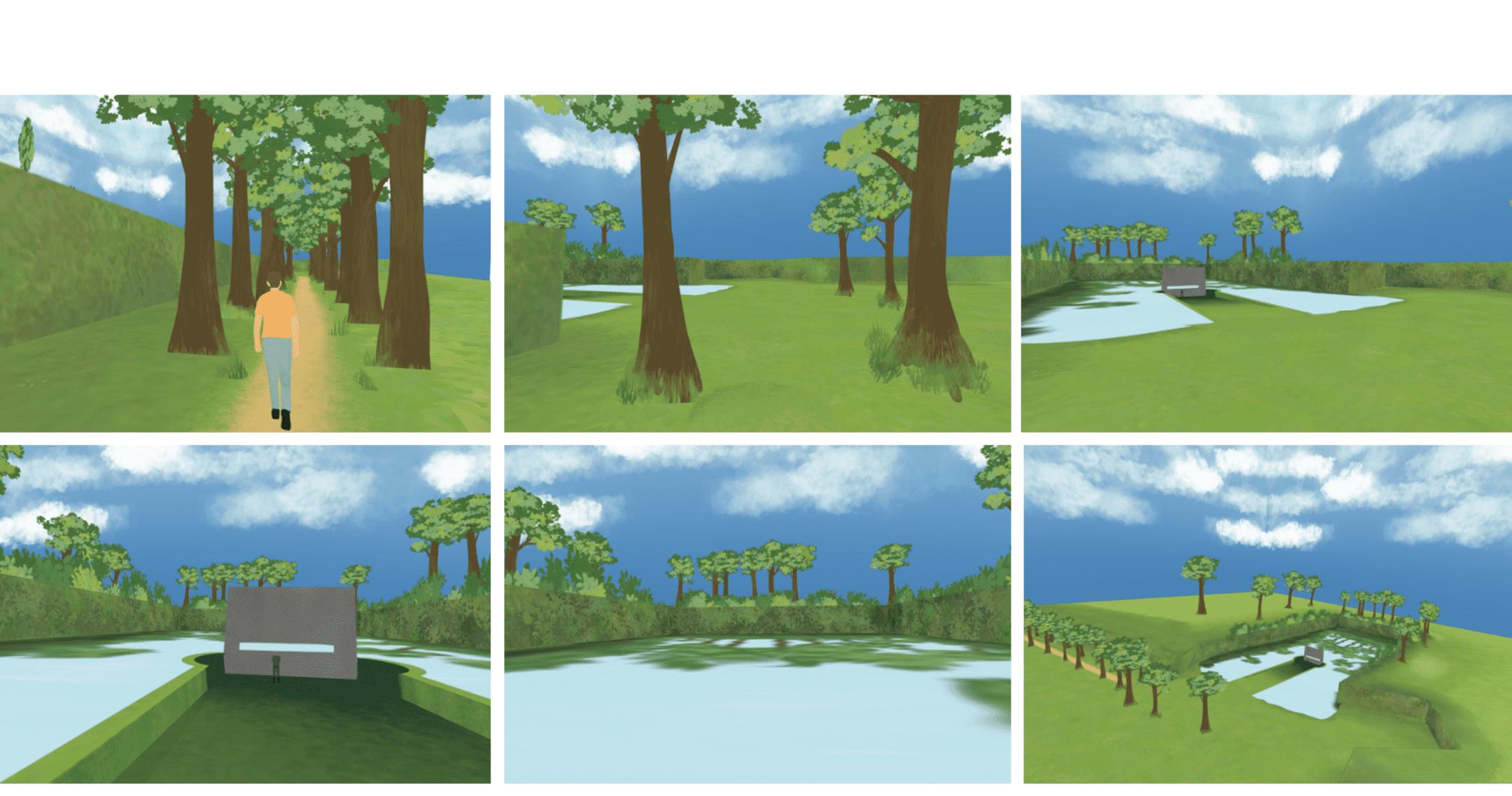Dengan intensi untuk menciptakan experience yang mengiring pengunjung dan mendapatkan element of surprise sebelum melihat reflective danau, Konsep design mengalami development. Preseden seperti Moses bridge di Netherlands dan jembatan di Belgia menjadi inspirasi untuk intervensi site pada danau. Inspirasi pathway juga berasal dari kawasan perumahan saya yang memiliki pohon-pohon tinggi yang menciptakan efek tunnel tanpa terkesan tertutup dan gelap. Dari inspirasi ini muncullah intervensi site baru saya. (gambar 3)
