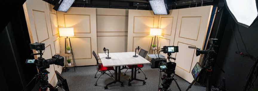 The lights and cameras are ready – you bring the action! Our state-of-the-art studio offers a customizable three-camera set, a live TV interview booth, and a padded radio room for audioonly recording. Hourly rental options are designed to fit your schedule and your budget.