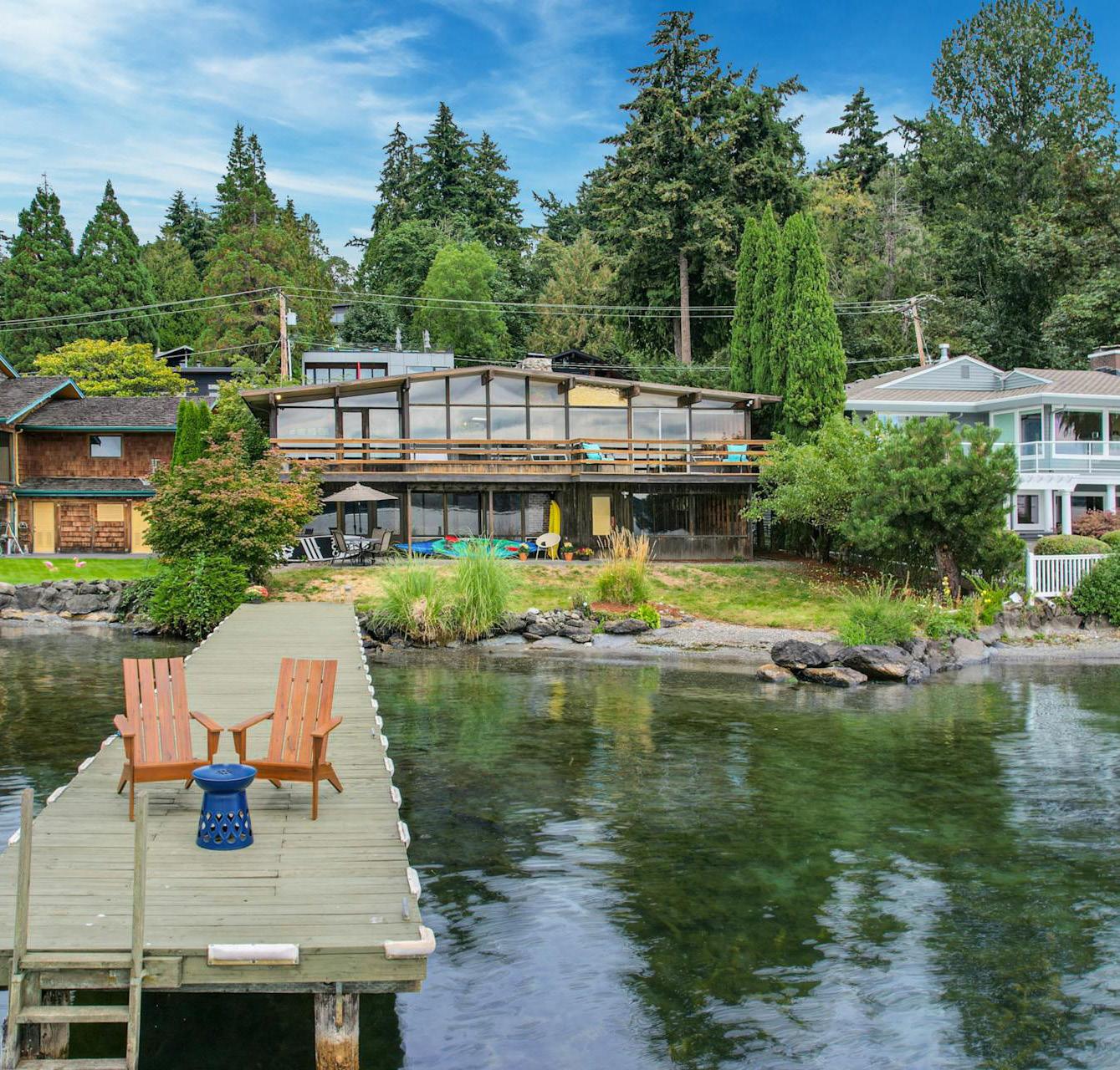 Experience unparalleled luxury living at this meticulously remodeled 4,307 square foot home with stunning lake views and manicured grounds. Nestled in sought-after Holmes Point, this spacious residence features 4 bedrooms, 4.5 bathrooms and includes a gracious, open and light-filled main floor great room, game room, wine cellar, office, home gym space, and more! Chef’s kitchen comes complete with a new Thermador range, dishwasher, waterfall island, and custom walk-in pantry. Two spacious primary suites with en-suite baths on main and upper floors. Multiple outdoor entertaining spaces with deck and wraparound patio, new professional landscape, custom hardscape and outdoor lighting. Truly pristine condition with gleaming hardwood floors, quality custom blinds, new metal roof, heating and central air conditioning. An attached heated flex space with epoxy floor currently housing an in-home gym but can accommodate 2-cars tandem for a collector car showcase or ??? Additional detached oversized 2-car garage for total garage parking for 4 cars. A+ location at the corner of a quiet cul-de-sac on the north end of Holmes Point – an area that includes 600+ acres of protected forest and trails, waterfront parks, neighborhood boat launch and just a few minutes to historic Inglewood Golf Club and all shopping services. Discover the epitome of refined living in this Holmes Point retreat!