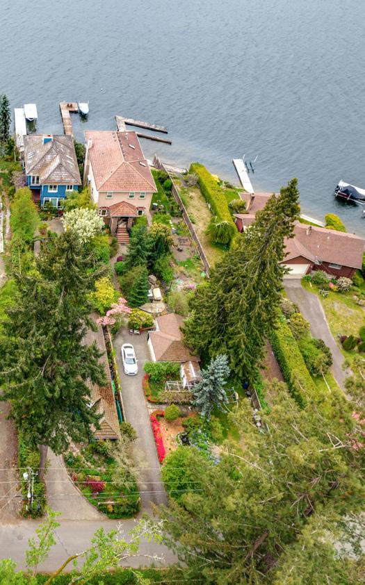 Large main floor deck with built-in barbeque station, private primary suite view deck and lower-level covered patio – providing year-round entertaining options. Host epic events on sun-filled days in your beautiful, level backyard oasis including waterside fire pit and spa, pizza oven, nice privacy and a completely rebuilt dock with boatlift, platform lift and 2 jet ski lifts – ready for all manner of water toys! Two separate 2 car garages (4 cars total). Additional large upper view garden – fully irrigated and lighted – with raised planter beds, fruit trees, and entertaining spaces – a perfect venue for magical garden parties! Located on one of Kirkland’s most sought-after quiet waterfront lanes, with a level, 5–10-minute walk to vibrant downtown Kirkland and it’s eclectic shops, restaurants, and waterfront promenade. Iconic waterfront properties such as this take many years to design, permit, and build and are the rarest of real estate – don’t miss this opportunity to live in and enjoy all this artistic masterpiece has to offer!