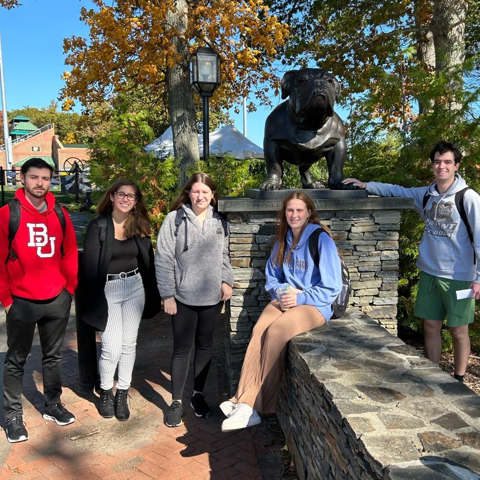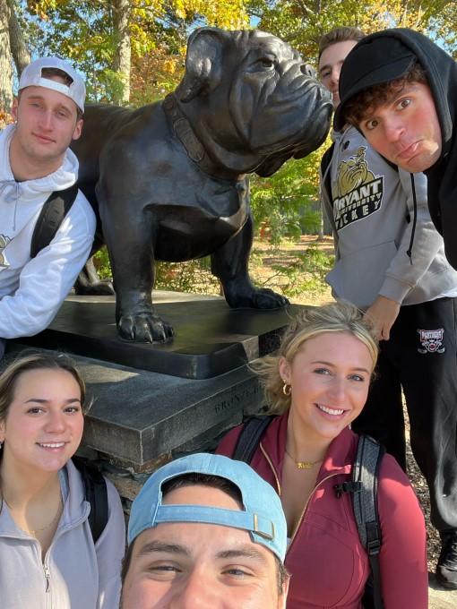 Professor Mary Robins’ Small Group Communication class went on a photo opportunity scavenger hunt around campus as a first step in starting to build cohesion for their small group communication project. The class puts their learning into action - after completing a deep dive into the theories and concepts of communicating in groups, students work on several projects to raise awareness and fundraise for local veterans’ organizations, including Bryant Veteran’s Professional Network, Bryant ROTC, Toys for Tots, Operation Stand Down Rhode Island, and Dare to Dream.
