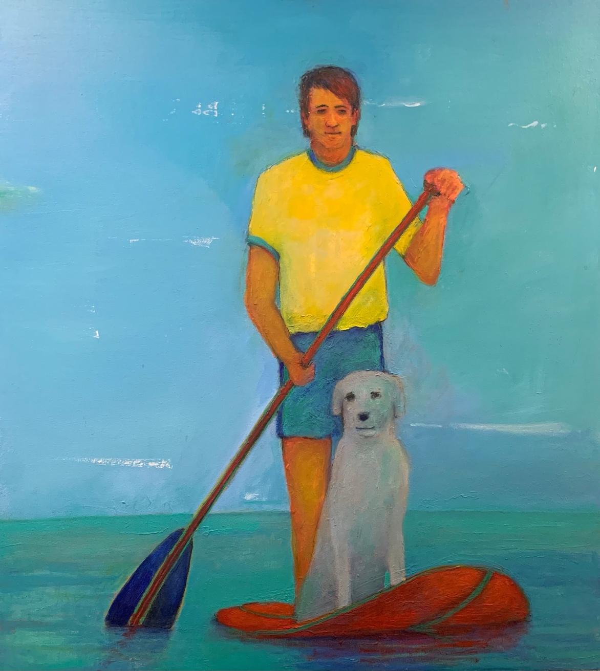 Though form, color, and composition are Rushton’s primary concerns, his pieces have an undeniably narrative aspect to them as well. He portrays biographical stories of daily American life: people tending to their animal friends, children playing made-up games, a boat drifting aimlessly on the waves. A visit to his studio reveals a particular fascination with dogs and horses– prominent features in the quintessential American experience–and the roles they play in our lives. Despite A Dog and Pony Show shining a spotlight on specific thematic elements, Rushton still emphasizes the importance of craft: “The figure and/or landscape serve as points of departure. What I paint is not as important as how I paint.” Indeed, it is his technique that makes these scenes feel so alive.