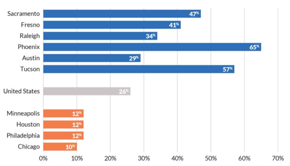 The shortage of affordable housing has exacerbated the homelessness crisis, with only 83,865 housing units added between 2010 and 2019 despite a population increase of over 190,000 residents. As a result, Los Angeles has become one of the nation's most expensive cities, with 59% of renter households burdened by housing costs. This pressing issue underscores the urgent