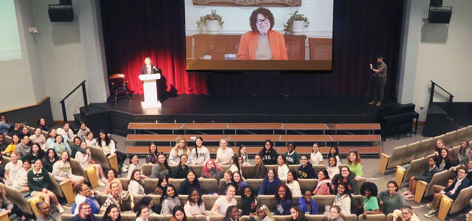 In April, Bryn Mawr students had the extraordinary opportunity to engage directly with U.S. Supreme Court Justice Sonia Sotomayor in a live virtual Q&A. Projected in Centennial Hall, the conversation touched on everything from judicial integrity and public opinion to mentors and overcoming imposter syndrome. Justice Sotomayor closed with a message to students: “Don’t ever let anyone tell you you can’t do something. Set your own standards.”