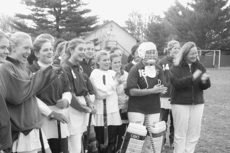 3. Last November, alumnae lacrosse players gathered for a spirited pickup game on the Rosabelle Sinclair Turf Upper Field.