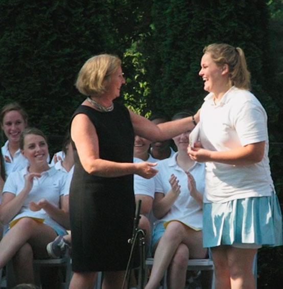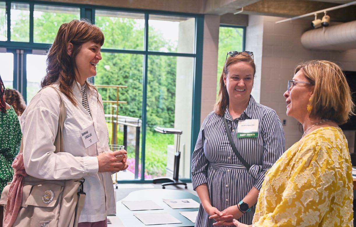 2. Hannah Douglas ’11 (left) and Rachel Myers ’01 (right) with Head of School Sue Sadler at the 25th anniversary celebration of the Edith Hamilton Scholars Program.