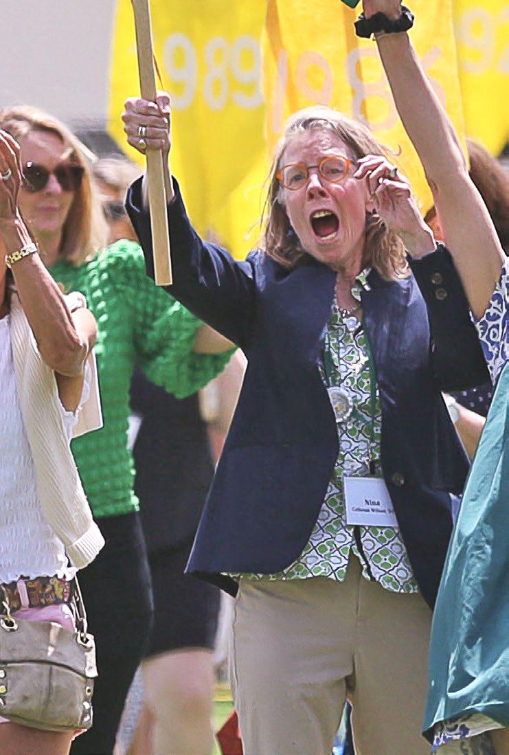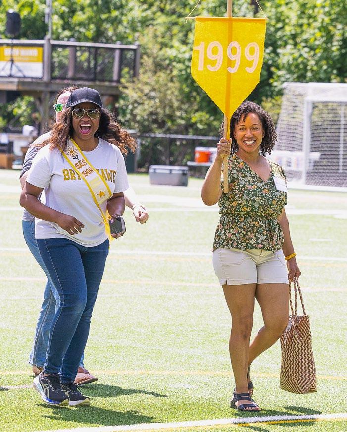 7. Director of Alumnae Engagement Deanna Boyd ’05 and outgoing Alumnae Association President Jenny German Nugent ’92, P’24 in matching yellow!