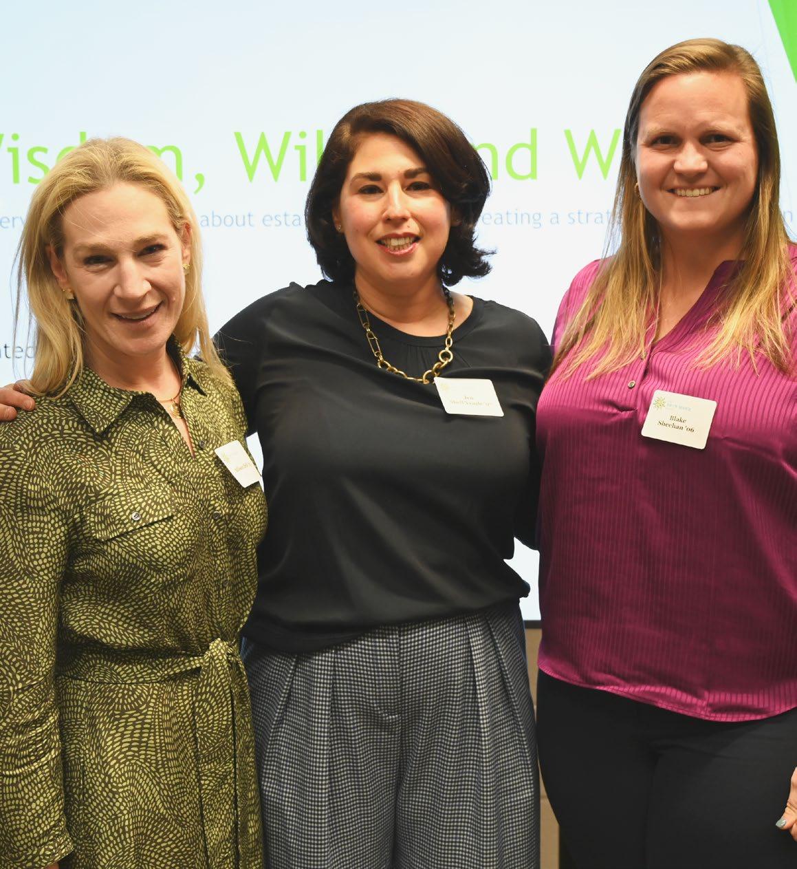 7. Allison Brill ’95, P’27, Jen Sheff Yeagle ’97, P’27 ’30 and Blake Sheehan ’06 teach alumnae and parents about estate planning at a Wisdom, Wills and Wine event.