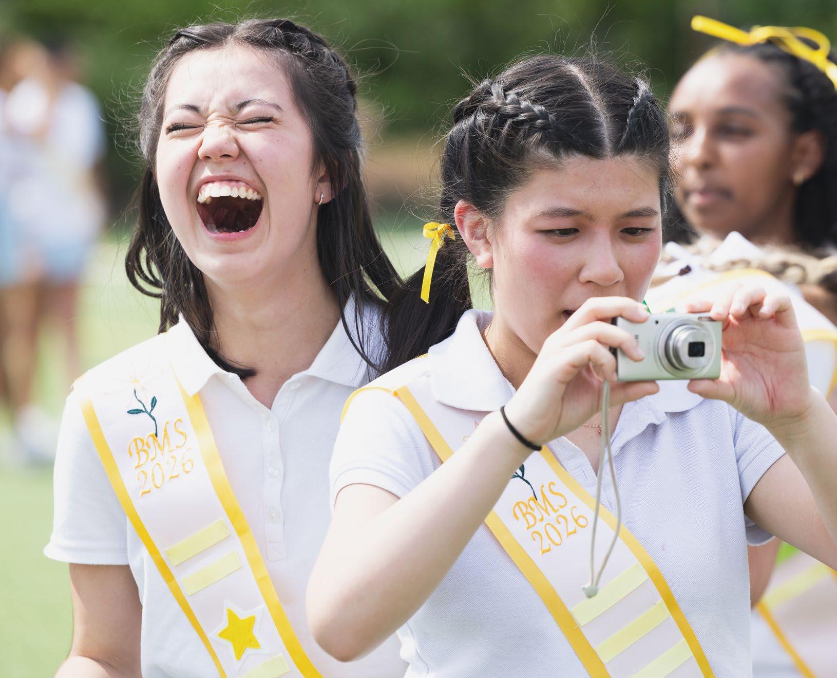 The Upper School implemented a fully phone-free initiative this year, with students checking in their devices each morning. The result? A noticeable shift toward face-to-face connection—and a few retro throwbacks. With digital cameras (see photo above from Gym Drill in May!) and even a Walkman in the mix, students are showing that community thrives with less screen time.
