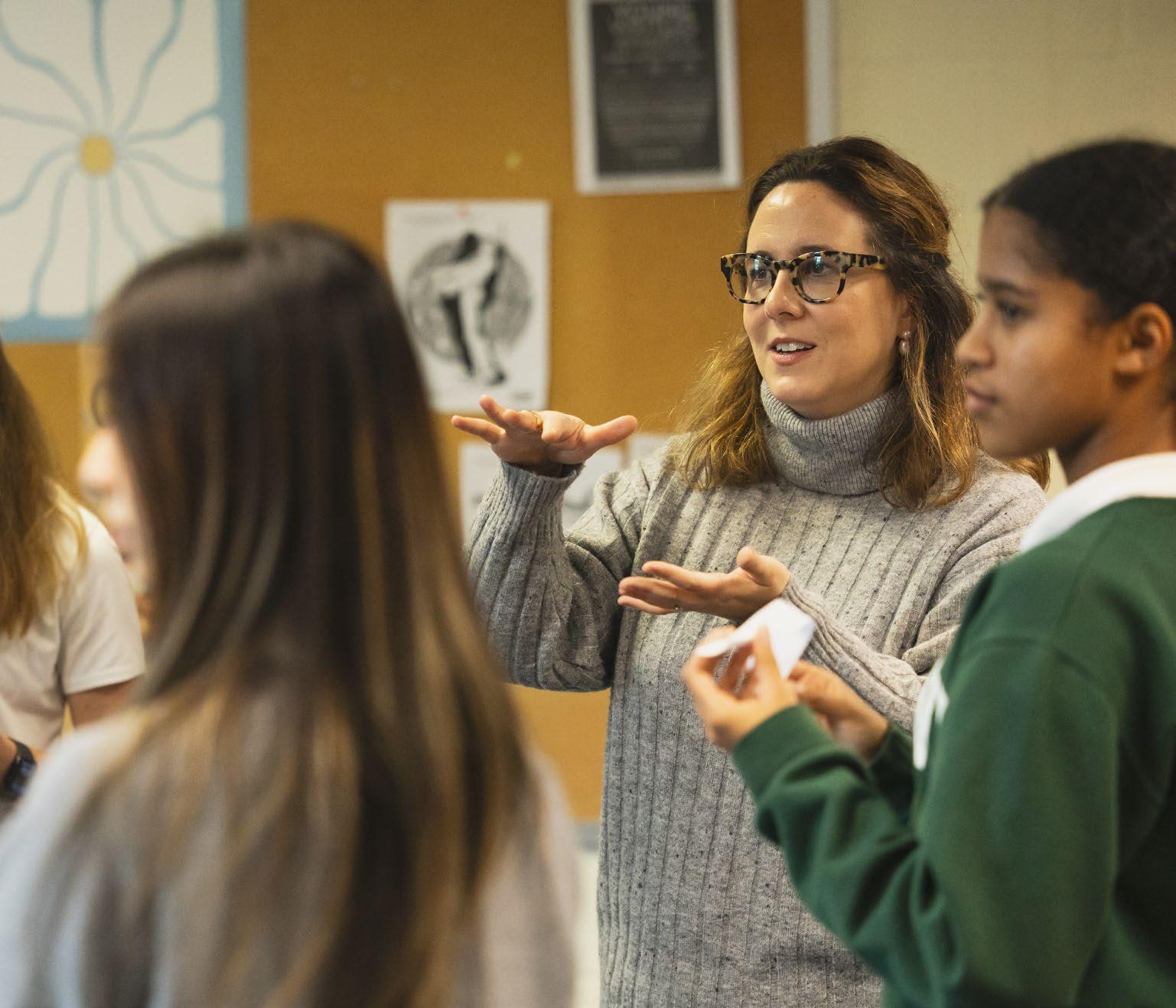 This hands-on, collaborative approach to learning Shakespeare exemplifies the Folger Method, a teaching practice transforming Bryn Mawr’s Upper School English classrooms this year. The method isn’t new to Viglietta, who spent eight years at the Folger Shakespeare Library in Washington, D.C., where she helped run educational programs and built a national network of teachers embracing this method. At Bryn Mawr, Viglietta and English teachers Rance Denton, Georgia Summers ’0 1, P’37, Stephen Mince and Leslie Jansen have all implemented the approach in their courses.