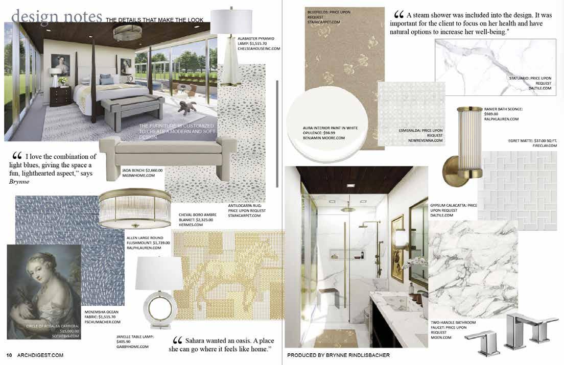 Each of these spaces are tailored for Rose. With lots of whites and warm colors to contrast each other. The bed and nightstands are custom and made to be a comfortable escape with the four posts drawing you to the center. Sahara is known for her healthy life style and ayurvedic eating habits. Needing a fresh start the house in the woods reflect her tastes, preferences, and wellness goals as her future home. As she was recently diagnosed with an autoimmune disease this home needed to be toxic free and limit the carbon footprint of the interiors. This was done by following the WELL building certification.