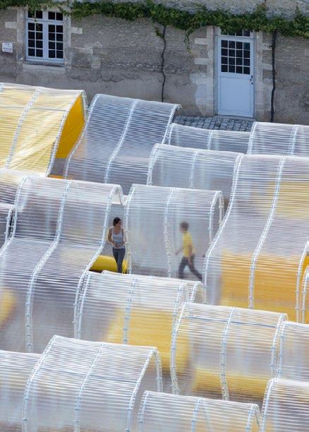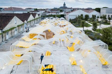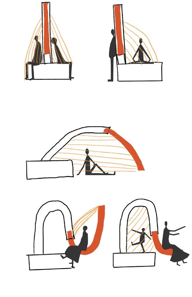 the creation of the outdoor pavilion was based around the idea of being transparent to the world along with the themes:transmission, exploration, senses, and materials. the structure is meant to allow users to Inhabit the space to sit, lean, and stretch in the context of workshops, conferences, etc. the space was designed to be able to take apart and transported to another location.