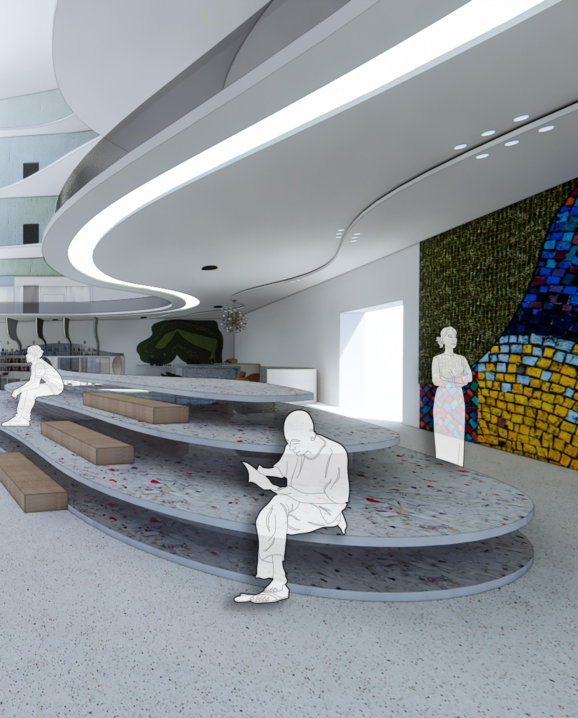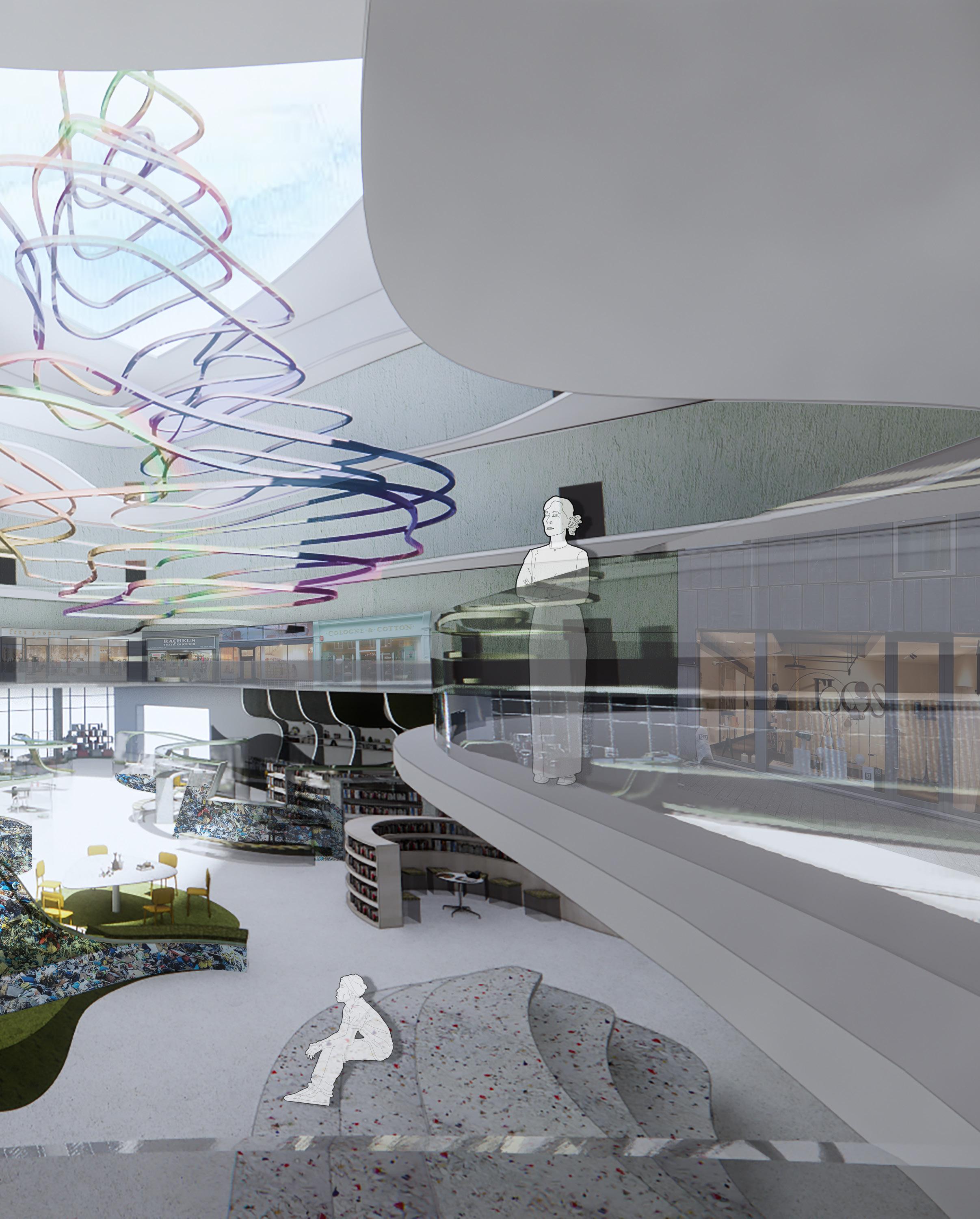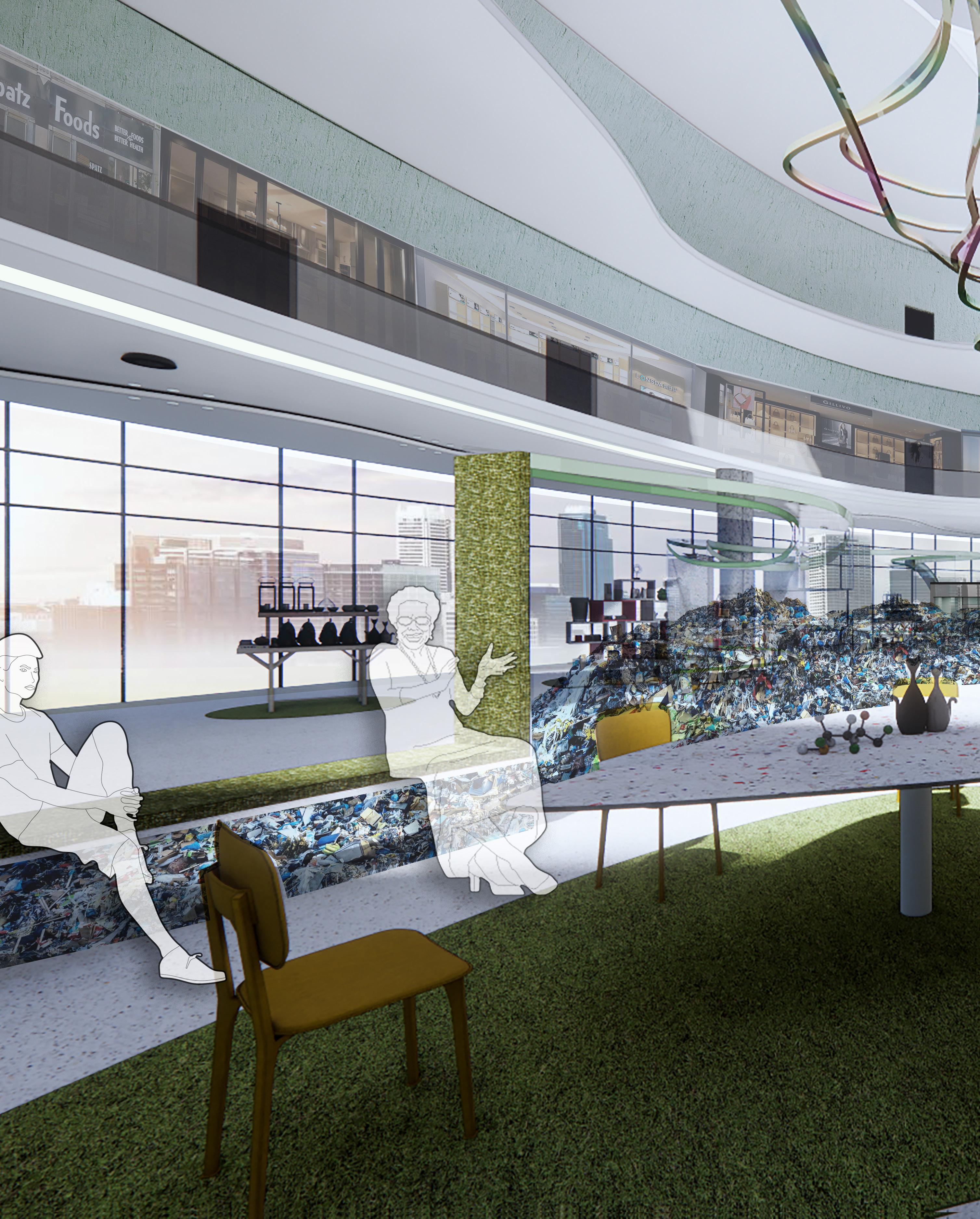 “The central acrylic vessel is the heart of the community, where you can drop off your plastic waste and start working on your ideas at the workshop.”