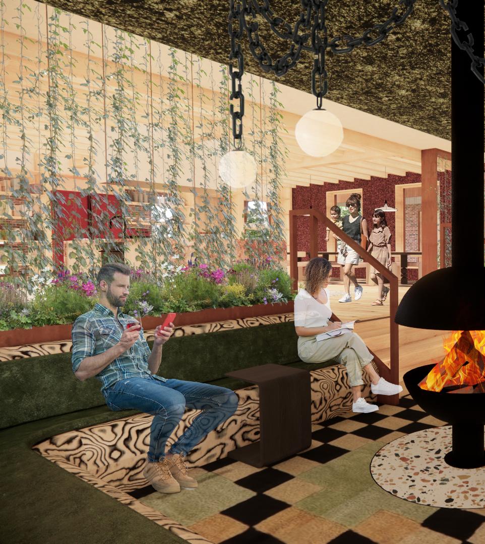 The Village is a sustainable co-living project meant to support the people of today working to better the future for the people of tomorrow. Living in harmony with the environment is the heart of this project by utilizing rainwater and greywater collection, communal onsite gardening, and renewable energy to run sustainably. The program was curated to encourage resident interaction and support the blossoming of a community with spaces like the market and trade center. Each space’s layout and material application are a combination of different time periods, specifically ancient indigenous pit-houses, industrial factories, and modern eclectic homes. Welcome home to The Village.