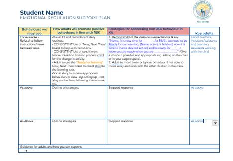 EMOTIONAL REGULATION SUPPORT PLAN (ERSP)