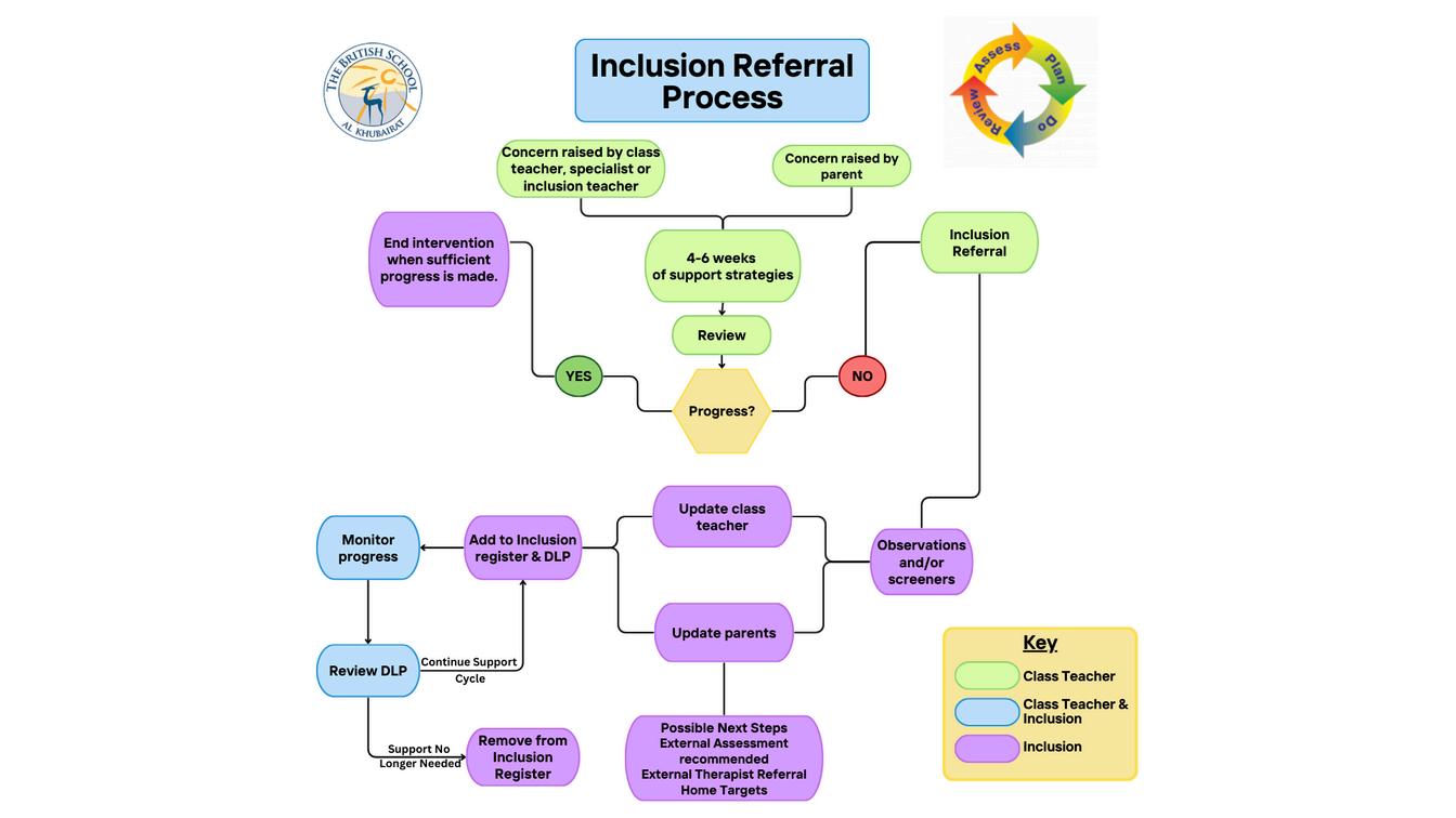 At BSAK, the Inclusion referral process can be initiated by either a teacher or a parent who has concerns about a child’s learning, behaviour, or emotional development. Once a concern is raised, our Inclusion Team begins a structured process to gather information, observe the child, and determine the most appropriate support