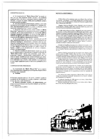 CONCEPTOS BASICOS a) La recuperación del "Barrio Reus al Sur" no puede ser otra cosa que una propuesta actual, solución a un problema actual que tiene sí un f uerte componente histórico-cultural y significante, a respetar en cuanto válida para la población actual y no mera evocación nostálgica. b) Será una propuesta eminentemente creativa y para nada reproductiva hecha a partir de una realidad física y humana existente, una interpretación actual de la ciudad y su historia y no la imposición voluntarista de un ··a prion···personal. e) Encarada como parte de una ciudad viviente, el "Barrio Reus al Sur" registrará en su realidad física las luces y sombras de su historia, de las etapas fundamentales de creación (los edi);cios originales remanentes reciclados), de destrucción (las ruinas remanentes de algunos otros edificios incorporadas al conjunto) y de recuperación (los edificios y equipamientos nuevos). d) La coexistencia de estos "hechos .. separados por casi 100 años, identificables dentro de una nueva unidad permitirá leer las diferencias (tipológicas, dimensionales y formales) entre las soluciones de vivienda popular de dos períodos críticos en la historia del país (la presidencia de Máximo Tajes y los tiempos que corren) y lo que significa el aporte del presente en cuanto a grados de higiene y confort y a la incorporación de sen•icios comunales. sociales y de abastecimiento. e) Nada de lo establecido anteriormente impide que con las nuevas construcciones se reincorporen al conjunto recuperado del "Barrio Reus al Sur" 'valores como dimensión. escala, ritmo y proporción, carácter y peculiaridades arquitectónicas que. sin imitar ni repetir, restablezcan una calidad ambiental que válidamente responda a la memoria, las apetencias y a la identificación de los habitantes con su barrio, como también a la recuperación de una imagen significativa para el resto de los pobladores de la ciudad". COMPOSICION DEL PROGRAMA La recuperación del "Barrio Reus al Sur" en su aspecto físico-funcional estuvo definida por un Programa ArquitectónicoUrbanf.stico que compendió: a) Vivie11®s