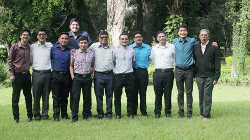 Guatemala, Ciudad de Guatemala, julio 2022.- Ocho jóvenes inician el prenoviciado en el Instituto Filósofico Manuel Enrique Piñol. de izquierda a derecha) Andrés Durán (CR), José Rojas (HN), Eduardo Calito (GT), Alejandro Hernández (SV), Nelvin Cuz (GT), Juan Peña (SV), Kendall Núñez (CR) y Fauricio Cerdas (CR).