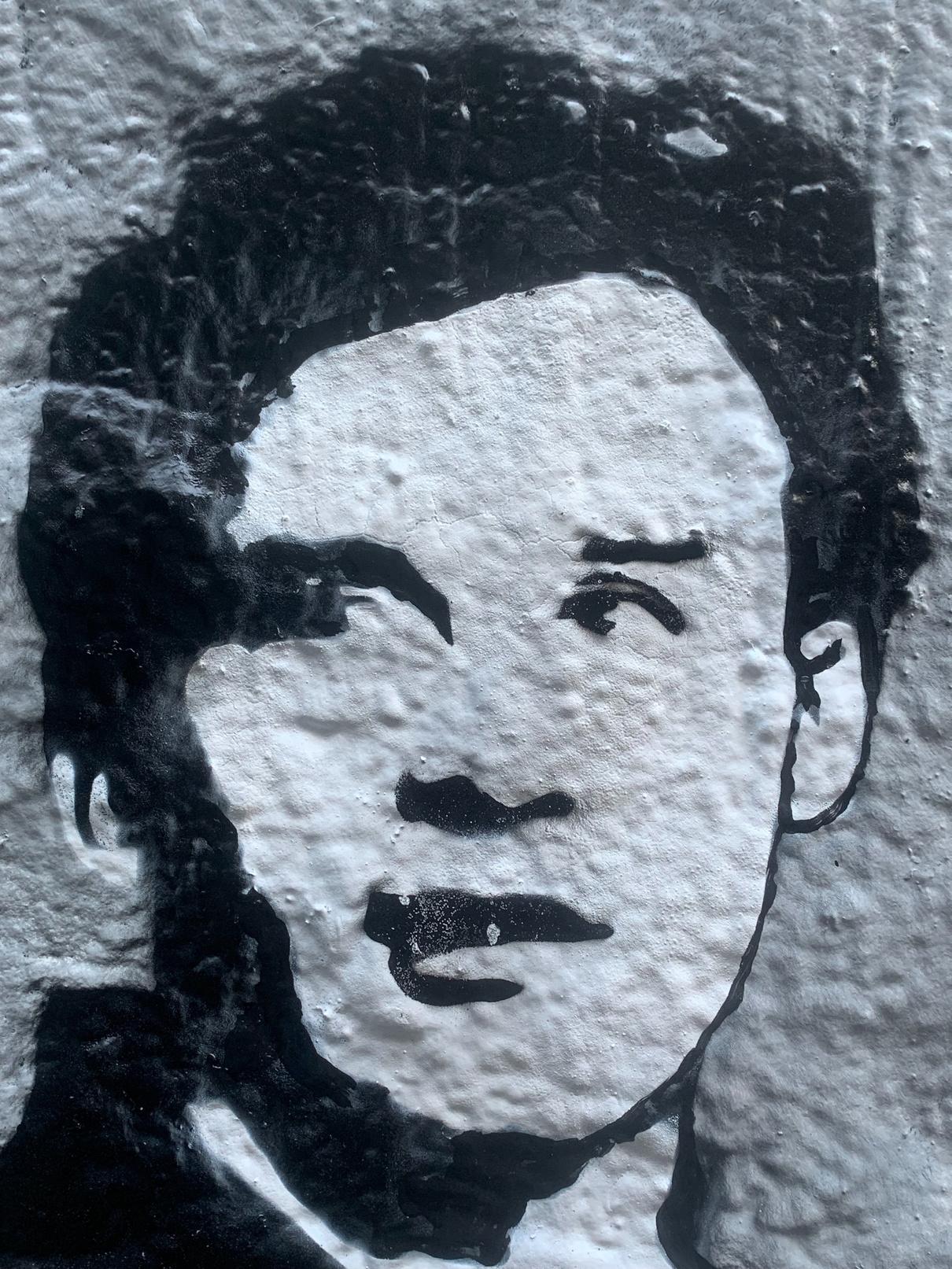 In town for a hugely successful solo show at West Chelsea Contemporary, French street art legend Blek le Rat took time to pay tribute to one of his most important inspirations, LES street art great Richard Hambleton whose Shadowman works startled and entertained passersby for years before his death in 2017. Blek installed lifesize likenesses of the troubled NYC artist on Ave A near 3rd (left), in the First Street Green (below left) and in Brooklyn. The LISA Project oversaw the Ave. A installation.
