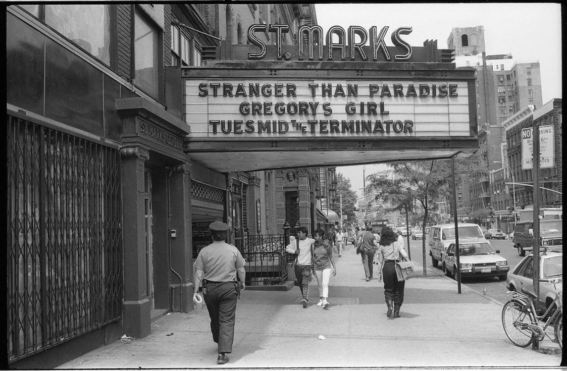 You've probably seen renowned EV photographer David Godlis's photo of Madonna at Gem Spa during filming of Desperately Seeking Susan. And movie trucks and equipment are pretty common around here, as are underground and indy film makers. Recently, the neighborhood starred in several great flicks – Meet Me in the Bathroom and Make Me Famous -- so we thought it was a good time to highlight just a few of our EV favorites along with the two new ones. Please don't hesitiate to send us your favs. Lower left is a Godlis shot of the old St. Marks Theater and below is the grand Loews Theater that was once on The B at 5th Street. We've also got our usual complement of street artists – Clown Soldier, LeCrue Eyebrows, Sinclair The Vandal – plus neighborhood artists Tom Manco and Laura Texter, photographer Lorraine Forte, rockers SoulCake and Thayer (the new coffee shop/ printer).