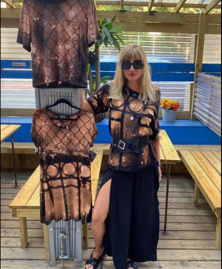 She then scouted other local fences, gates, and structures to use to create these unique garments. She added tshirts, jeans, and leggings to the line. Her pieces are created on site and each piece includes a tag with a location description. Laura’s background includes working as a costume designer on many productions as well as running her own Halloween business. She also designs accessories for mass production, but her true passion is art. She started East Village Drink N Draw which is held at several local bars. The New Lines collection is available at 3rd and B'zaar or by contacting Laura directly at @NewLinesNY.