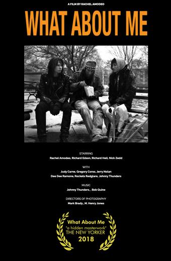 What About Me was written, produced, and directed by Rachel Amodeo. She plays the lead role of "Lisa," who ends up homeless and drifting in the EV. The film was described by The New Yorker as "a hidden masterwork that brings grace and cosmic humor to the grimy streets of the EV in the 1980s."