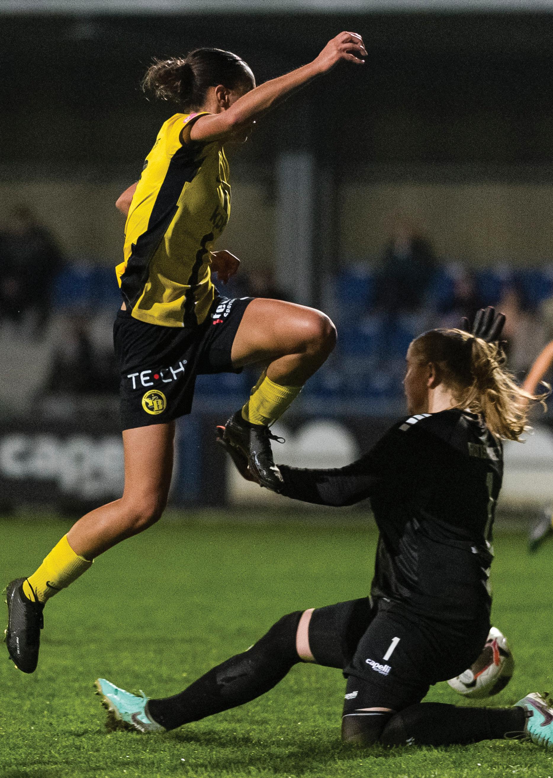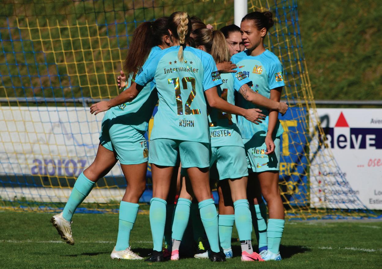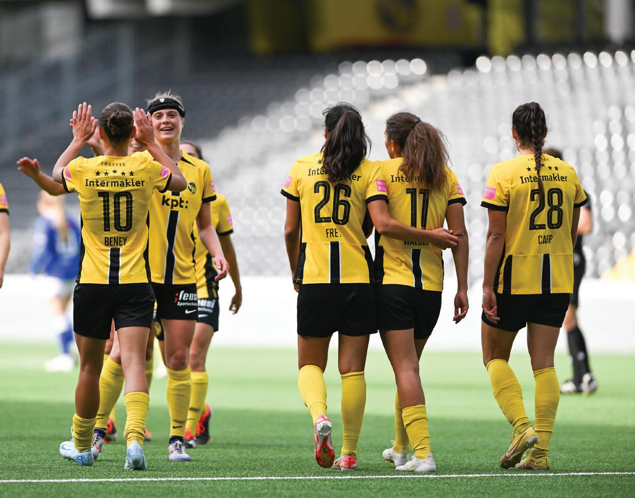 Die Euphorie im Berner Frauenfussball ist endgültig ausgebrochen. Acht Siege in Folge, sechs davon in der Meisterschaft, und mindestens drei Tore in jedem der letzten vier Meisterschaftsspiele. Die Bilanz spricht für sich. Mit dem 3:0-Auswärtssieg vor der Nati-Pause gegen die GC Frauen haben sich die Bernerinnen mit 19 Punkten aus neun Spielen an die Tabellenspitze gesetzt. Mit Naomi Luyet und ihren acht Meisterschaftstoren stellen die YB Frauen ausserdem auch die aktuelle Topscorerin der Liga. Und auch die Nati-Abstellungsperiode in der vergangenen Woche war für die Hauptstädterinnen durchaus erfolgreich. Mit Naomi Luyet und Iman Beney standen gleich zwei YB-Akteurinnen fürs Schweizer A-Nationalteam auf dem Platz. Luyet erzielte im Spiel gegen Frankreich das entscheidende 2:1 und damit auch ihr erstes Länderspieltor.