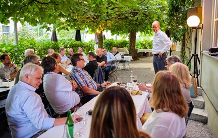 Was im letzten Jahr - als Alternative zum corona-bedingt ausgefallenen Weihnachtsessen - erfolgreich durch geführt wurde, stand dieses Jahr als Yellow Top-GrillAbend auf dem Eventkalender. Bei herrlichem Wetter genossen die Anwesenden im Garten des Restaurants Obstberg die Köstlichkeiten aus dem Smoker. Von Sandra Betschart, General Manager der YB-Frauen, sowie YBKommunikationschef Albert Staudenmann erfuhren die Yellow Top-Mitglieder interessante News rund um die sportliche Situation des BSC YB. Dabei standen der neue Staff, die Vorbereitung und die Transfers im Fokus. Sand ra Betschart sagte in diesem Rahmen zudem gleich noch England als Siegerinnen der Frauen-EM richtig voraus. Ein gelungener Abend, welcher zum Traditionsanlass werden könnte.