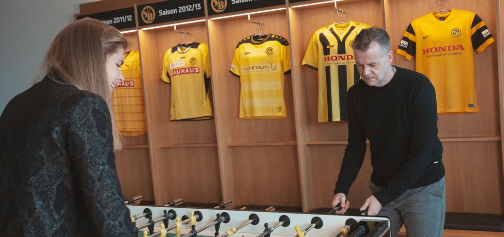 Vorwort Inhalt 4 TimeTool & Komit auf den YB-Hosen 12 Der Season Opener 2023/24 18 Unterwegs mit Kastriot Imeri 26 Der siebte «YBrunch» 30 Kurz gesagt – Meinungen aus dem YB-Netzwerk 40 KPT – neue Hauptpartnerin der YB Frauen 58 Das erste «YB Golf Masters» 62 Getroffen im YB Sky Club 66 News aus dem Fussball-Business 70 Presidents Club: Mathias Ammann 76 Über uns: die Sportadministration 82 Nachspielzeit: bunter Mix