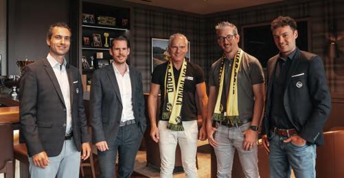 Ludwig Nehls (CEO, Grand Casino Bern), Wanja Greuel (YB), Kevin Kunz (CEO, Kursaal Bern), Lukas Meier (COO, Kursaal Bern) und Gian-Andrea Giacometti (YB). Fotocredit: Kursaal Bern / Jonas Frankenfeld