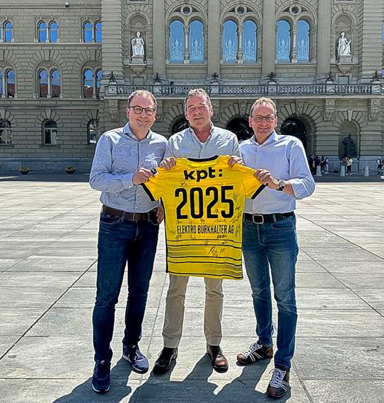 Roger Bühler (stv. Geschäftsführer, Elektro Burkhalter), René Hitz (YB) und Patrick Heinzer (Geschäftsführer, Elektro Burkhalter).