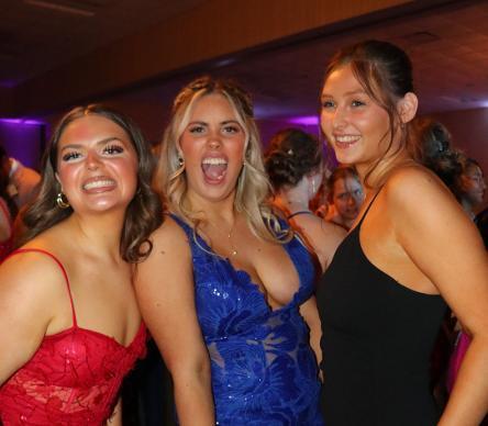 Ashton Morgan, Emma Gillespie and Kelsie Giacone pose for a photo at their track meet