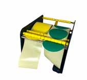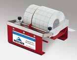Stable tape dispenser with safety bar and with cellular rubber protected blade to minimise danger of injury. Suitable for application of Filmolux Protection Tape, Filmoplast T and Filmoplast SH Cloth Tape.