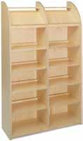 Single-sided, angled book trolley with 3 shelves. Generous amount of clearance between shelves to accommodate larger books.