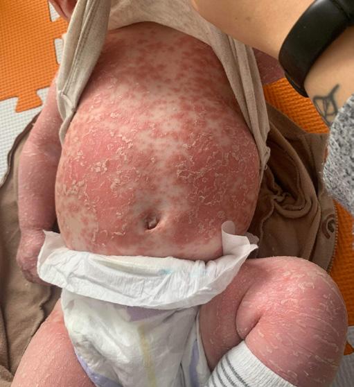 After giving birth to our son Trent, my husband and I thought we were ready for the challenges of a newborn again. What we weren’t prepared for was Trent being three weeks old and coming out in a rash. What began as small follicular spots and round scaly patches, quickly morphed into big patches of rash that covered large parts of his body. Small islands of sparing were left between the big patches of red - a key characteristic of what we later discovered was Pityriasis Rubra Pilaris. Within weeks, his body was 95% covered and we were dealing with an erythrodermic three month old.