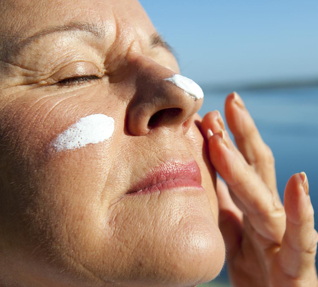 A sunblock should ideally be used all year around. Remember that ice and snow will reflect UV light and can even increase the amount of exposure to UV radiation. Depending on your skin type use a high factor sunblock and one with high UVA star rating. This protects against developing wrinkles and importantly reduces skin cancer risk.