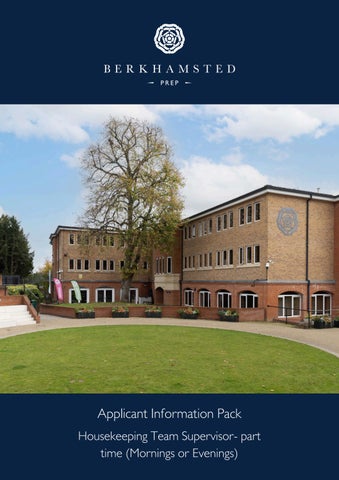Applicant Information Pack Housekeeping Team Supervisor- part time (Mornings or Evenings)