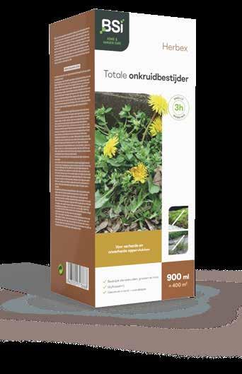 H373 ; H412 Waarschuwing 64223 BSI Herbex 225 ml 15812N 500 g/l H319 Waarschuwing 64244 BSI Fertimoss 3,5 kg 15149N 7,7% ijzersulfaat watervrij H319 Waarschuwing 64251 BSI Generation Block 100g (5x20g) NL-0000809-0000 Difethialone 0,0025%