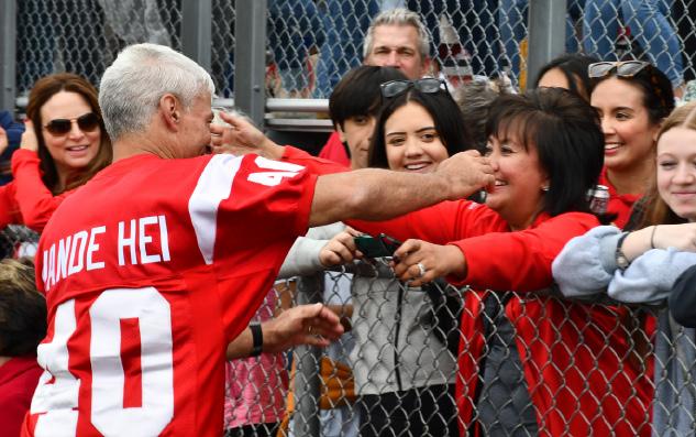 a relatively safe situation, heighten the stress level, and then learn how to deal with it,” said Vande Hei, noting, “When I was on the team, it wasn’t just about playing football. It was about bouncing back up when things hurt, learning how to be a member of a team, and recognizing the whole team could fall apart if you didn’t participate.” The crowd at Saturday’s football game erupted in cheers as the current football captains presented him with a team jersey (pictured above).