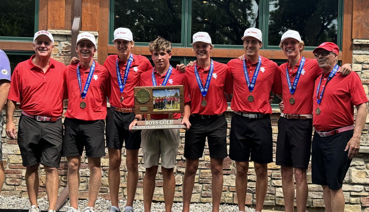 The boys’ golf team made school history with its first State title. Patrick Hastings ’26 sank a three-foot putt to clinch the one stroke win over Waconia at Bunker Hill Course. Alyssa Raghuveer ‘26 also represented BSM in the MSHSL Class AAA State Golf Tournament.
