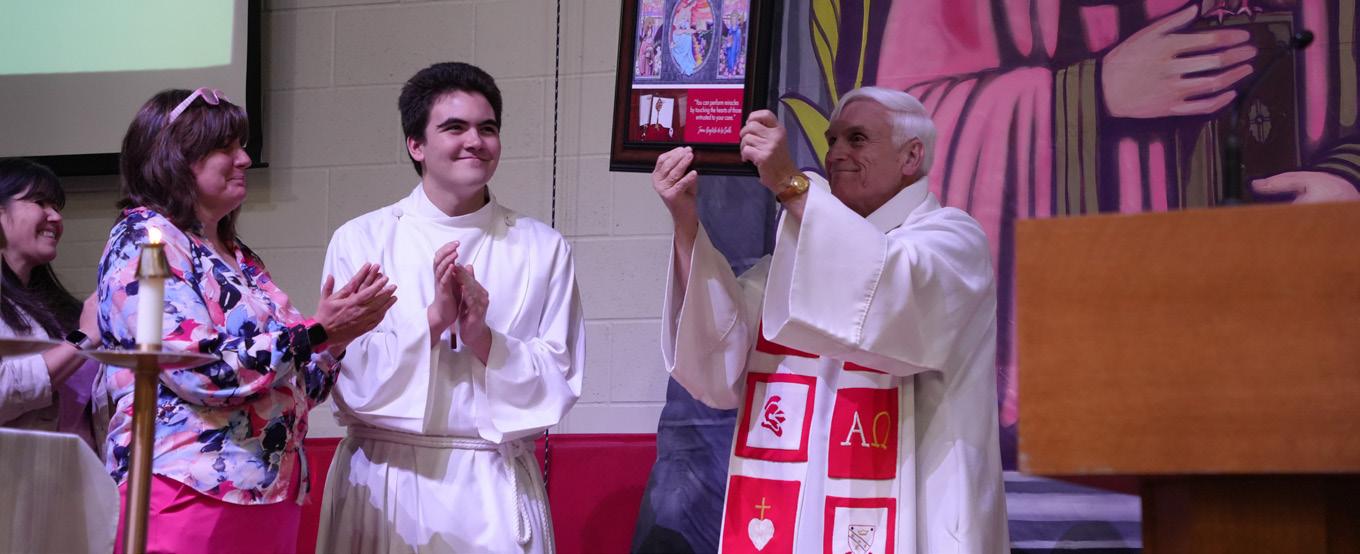 On the Cover: Campus minister Mike Jeremiah with members of the Class of 2024