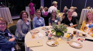 Remembering the Good ol’ Days: SMA Class of ‘63 reunion had fun chatting about their high school memories. (l-r): Michaela Dierks, Sharon Paquette Slininger, Camille Schmitzer Peschken,Terri Spartz Karels, Julia Buckley-Ess, and Peggy Doyle Dominic.