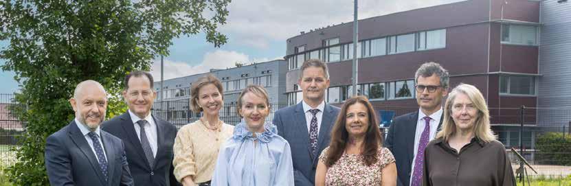 From left: Patrick Heuff (SSV Headteacher), Nitzan Kaduri (Chief Finance and Operations Officer), El de Libero (Interim Head of Communications and Admissions), Claire Waller (JSV Headteacher), James Oxlade (SSL Headteacher), Karren van Zoest (JSL Headteacher), Duncan King (Acting Head of SSL), and Helen van Buuren (Interim Head of Human Resources).
