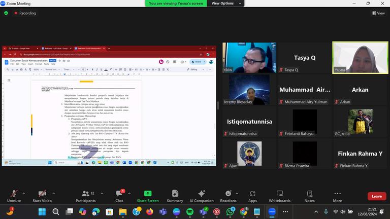 Diskusi bersama Pihak Majalaya pada tanggal 12 Agustus 2024 diadakan untuk memberikan gambaran yang lebih jelas mengenai langkah-langkah strategis dan teknis terkait kegiatankegiatan Pengurangan Risiko Bencana (PRB) yang akan dilaksanakan BSO Zephyrus nantinya Selain itu, dilaksanakan sesi tanya jawab untuk mendapatkan masukan dan umpan balik yang konstruktif dari pihak Majalaya sehingga rencana kegiatan yang disusun dapat lebih efektif dan berjalan dengan baik nantinya.