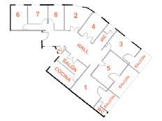 Superficie de 240 m2, 7 y 8 habitaciones, comedor, cocina, baño y aseo.