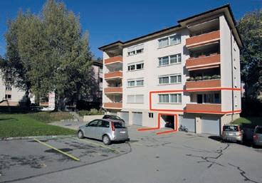 4 ½-Zi.-Hochparterrewohnung Mit der Wohnung werden eine Einzelgarage und ein separater Aussenparkplatz verkauft. Die Wohnung mit Südbalkon hat 94 m² Nettowohnfläche sowie einen Keller und Estrich.
