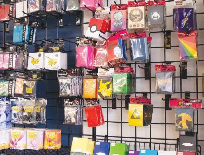 Game mats and cards for Magic: the Gathering, a popular fantasy card game created in 1993, on a table in Wizard’s Keep Game and Hobby store March 23. Throughout the week, Wizard’s Keep lets people play games in the back of the store. HANNAH AMOS, DN