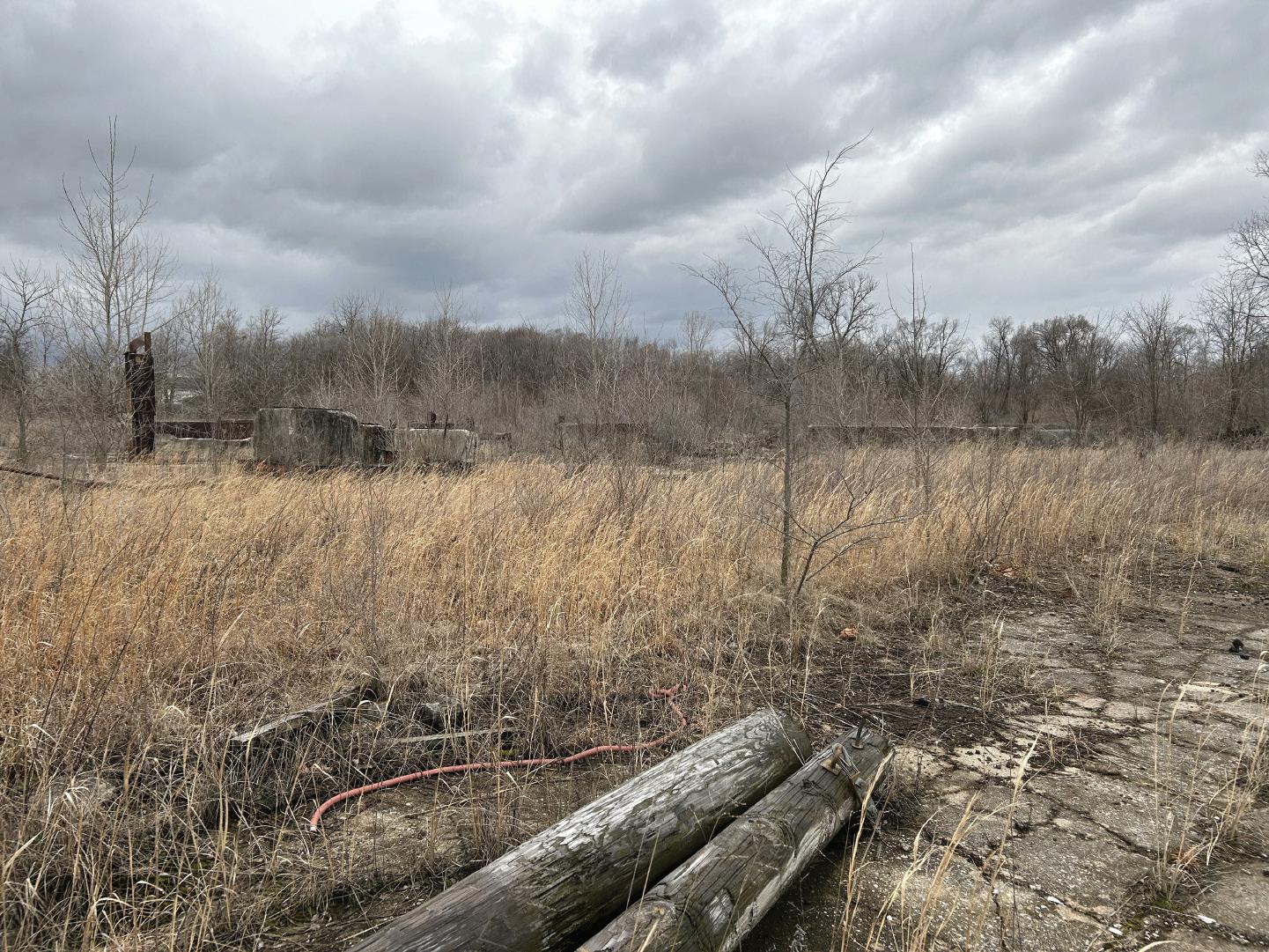 Between cracked foundations, vegetation has grown rampant over time on the site. Cottonwood trees litter in and around the property, some atop 30 to 34-foot hills of cast-off foundry sand. Remnants of site walls are left over here and there.