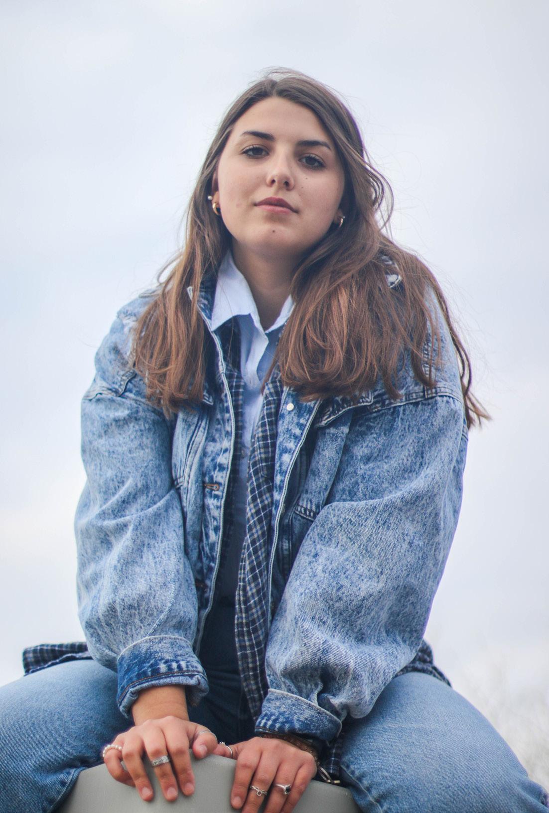 Model Maggie Miller poses outside of LaFollette wearing her favorite pair of jeans. Miller enjoys layering outfits with pieces like flannels and light jackets.