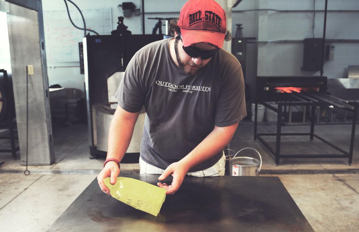 When McGarvey first visited Ball State, he took a tour of the College of Architecture and Planning (CAP) as well as the Department of Art. As he walked through the halls of CAP, his interests began to shift from architecture towards print making. Prints are made by transferring ink through a matrix or prepared screen or other material.